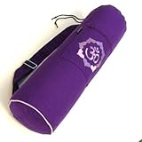 MundoYoga - Sac à tapis de yoga, à symbole OM, violetCe sac à tapis de yoga en toile de coton haut de gamme et à finition exceptionnelle vous accompagnera pendant longtemps. Avec un diamètre de 18 cm, il offre beaucoup d'espace pour les tapis de yoga possédant une largeur de 65 cm maximum et une épaisseur de 8 mm maximum. Les deux poches zippées en plus sont très pratiques (une à l'intérieur et une à l'extérieur) pour garder vos clés, votre portable et votre porte-monnaie en sécurité. Ce sac à tapis de yoga s'ouvre par le haut et se ferme avec un cordon coulissant. De plus, ce sac à tapis de yoga possède une bandoulière réglable, qui peut se rallonger jusqu'à 95 cm. Ainsi, le sac peut être porté en travers du dos (un avantage pour les cyclistes)Le devant est orné d'une belle broderie qui rend ce sac exceptionnel représentant le symbole OM entouré de pétales de lotus.